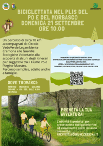 Una bellissima passeggiata in bicicletta guidata dal Circolo VedoVerde Legambiente di Cremona, in collaborazione con gli Uffici PLIS del Po e del Morbasco e delle Guardie Ecologiche Volontarie.